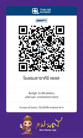 เมือชำระเงินเรียบร้อยแล้ว ส่งหลักฐานแจ้งการโอนเงินที่ Line:tharakiree หรือ E-mail:tharakireeplacehotel@gmail.com